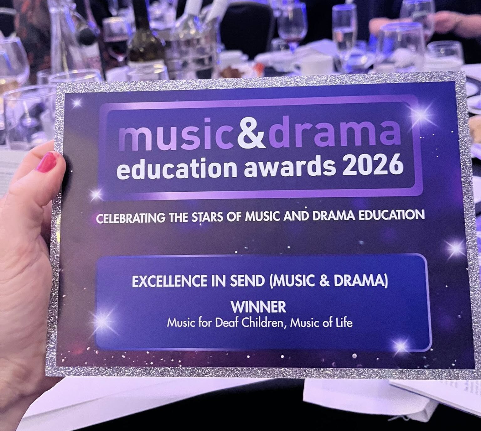 We are delighted to share the wonderful news that Ruth Montgomery and Music of Life’s ‘Music for Deaf Children’ programme has won the award for Excellence in SEND, Music and Drama, at the Music and Drama Education Awards 2026.
